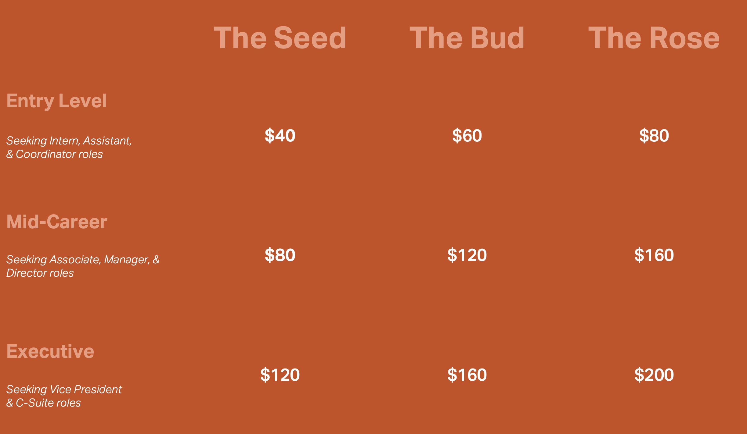 Accessibility in pricing is important to me. Let’s talk about a pricing plan that works for you.